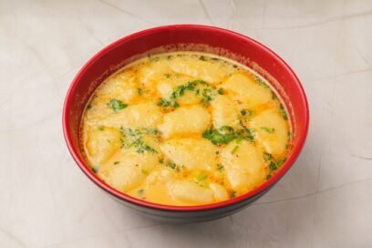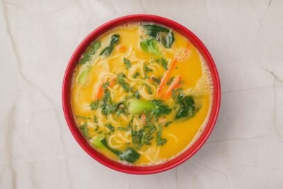 A warm, comforting bowl of popular Nepali instant noodles simmered in a savory broth with fresh herbs, onions, and bold spices. A nostalgic and satisfying street-food favorite.