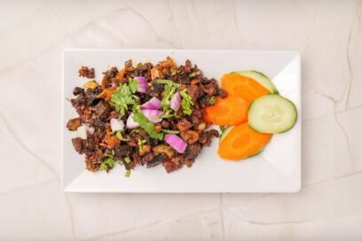 Authentic, smoky, sun-dried meat jerky pan-fried to perfection with fresh tomatoes, onions, green chilies, and bold spices. A delightfully chewy and spicy delicacy.