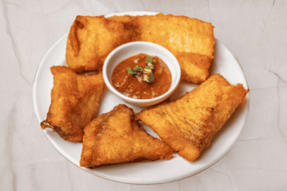 Golden, crispy deep-fried dumplings filled with a savory mixture of seasoned meat or veggies. Crunchy on the outside, juicy on the inside, and served with a flavorful dipping sauce.